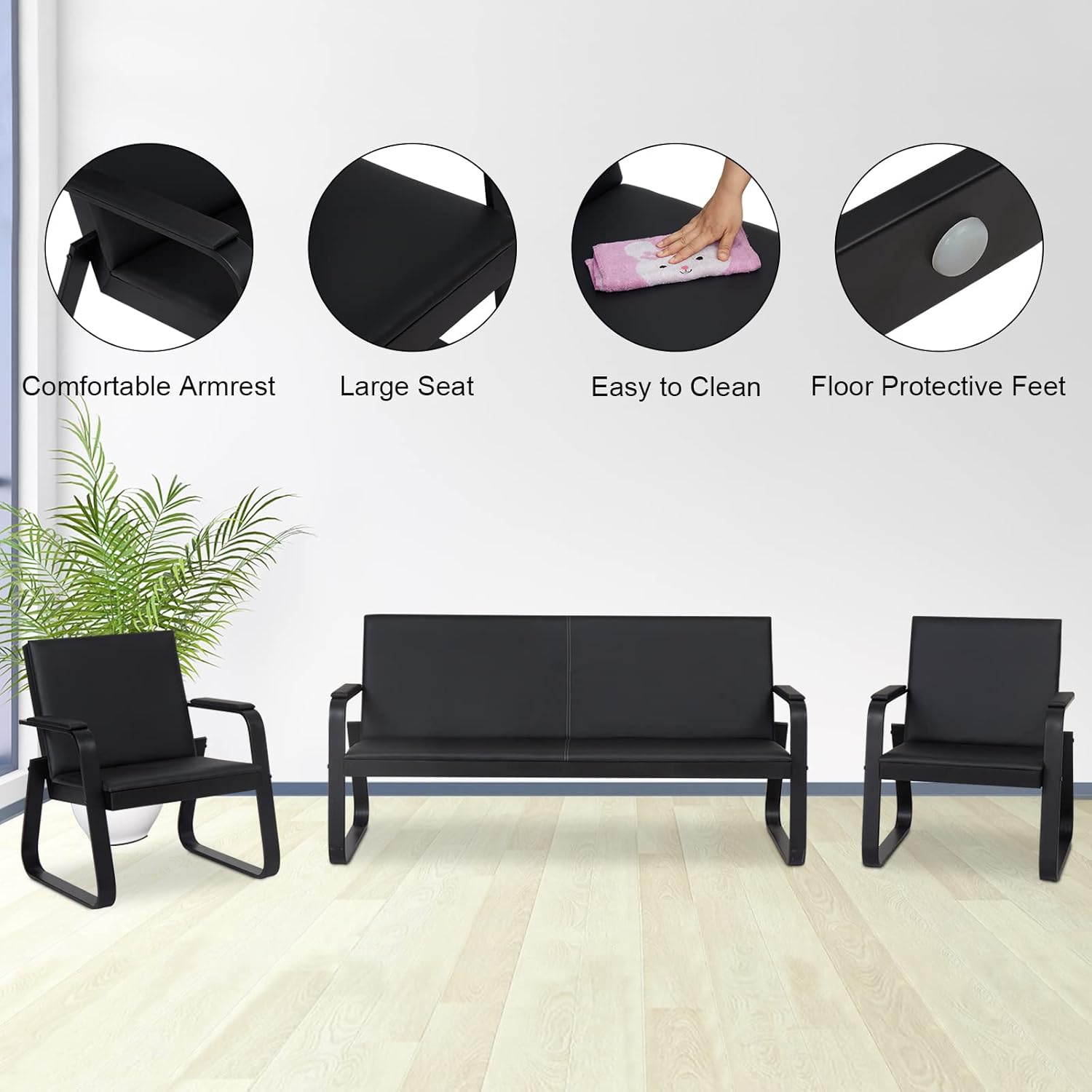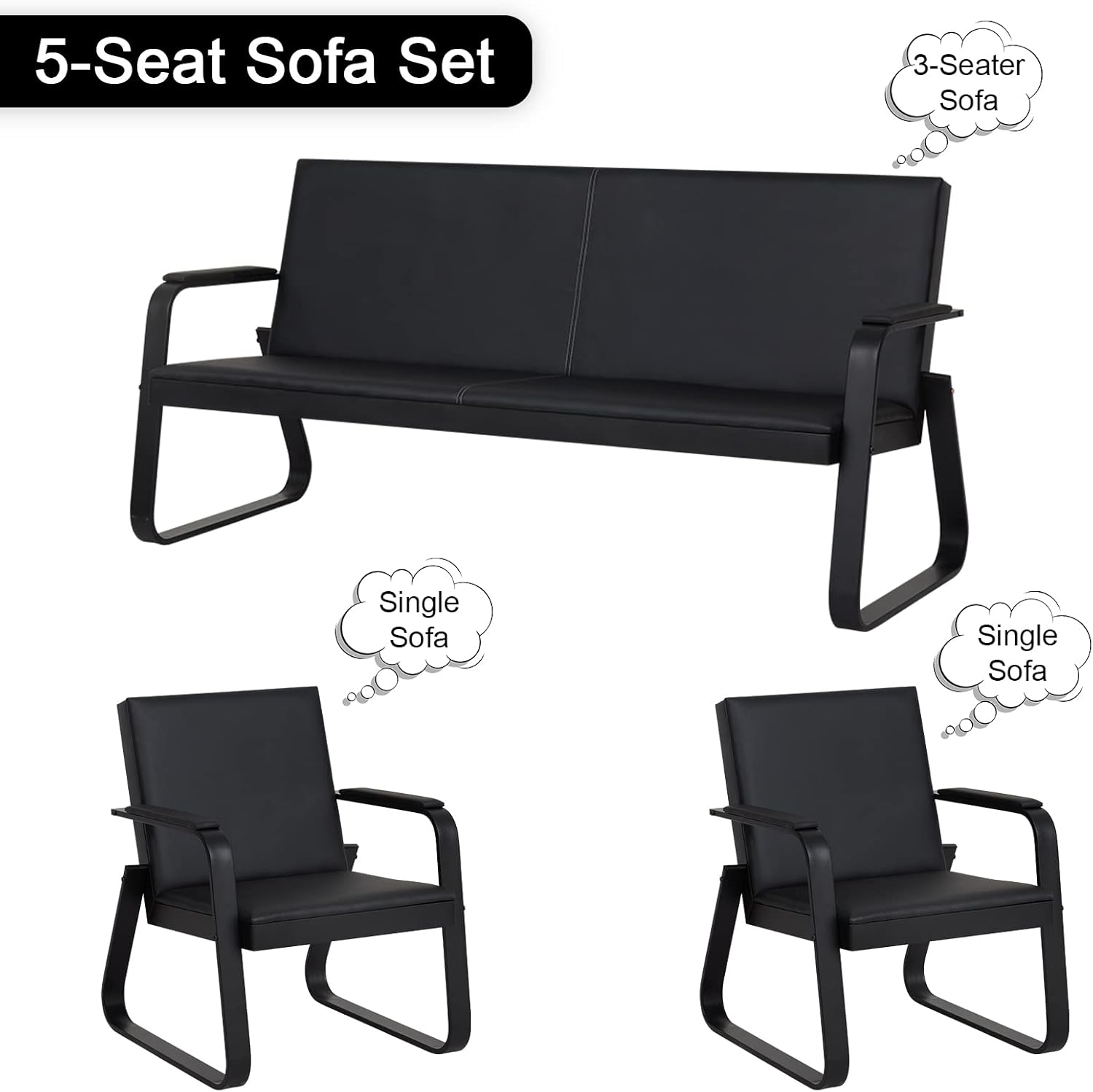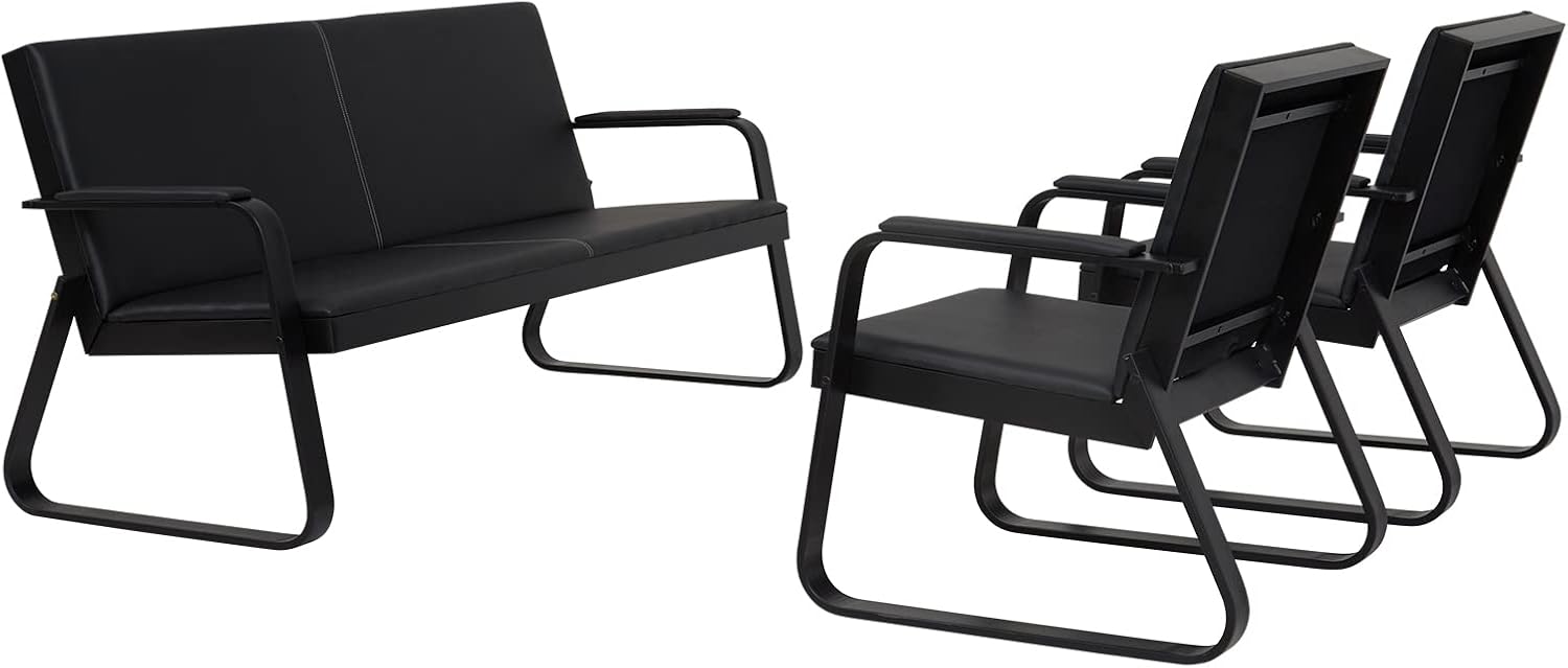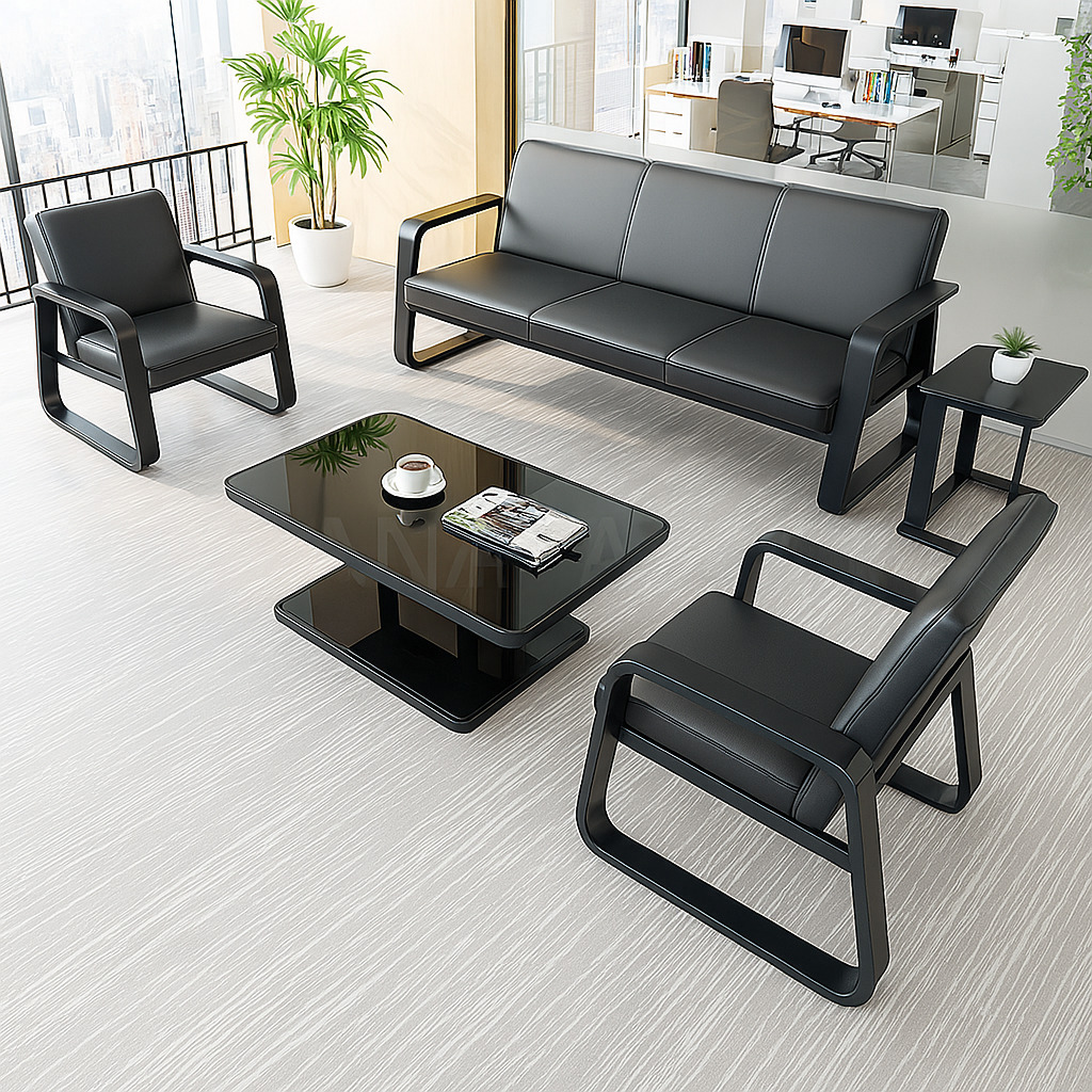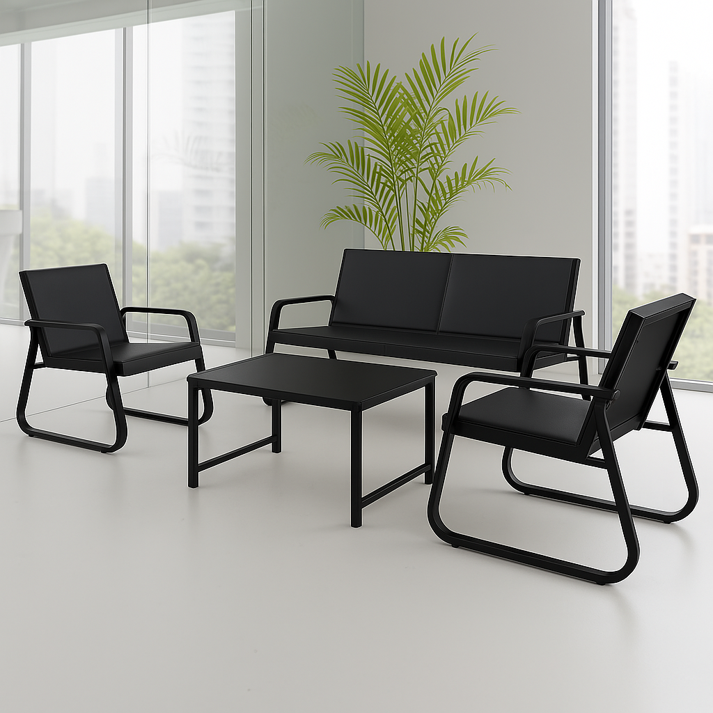 The Black 5‑Seater Office Reception Sofa is a sleek and welcoming seating solution designed for waiting areas, lobbies, or executive reception spaces. Upholstered in durable black faux leather or premium fabric, it offers a clean, professional appearance that complements modern office interiors. With ergonomic cushioning across each seat and a gently angled backrest, the sofa provides comfort for guests during extended waits. Its modular design allows for flexible placement—whether in a straight line or configured around a corner—making it adaptable to various layouts. A sturdy hardwood or metal frame ensures long-lasting support, while polished metal or wooden legs elevate the sofa off the floor for easy cleaning underneath. Low-maintenance materials and removable cushions enable simple upkeep, and thoughtful details like integrated piping or button-tufting add a touch of style. Overall, this 5‑seater sofa balances functionality and contemporary design to create a refined, comfortable reception space.