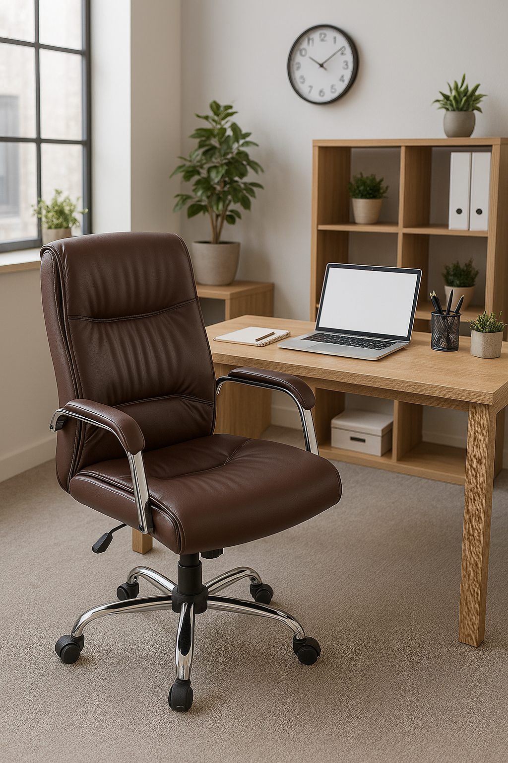 The Brown Swivel Executive Office Chair is a sophisticated and functional seating option designed to enhance comfort and productivity in professional settings. Its ergonomic design, combined with high-quality materials and adjustable features, makes it a popular choice for both home and corporate offices.