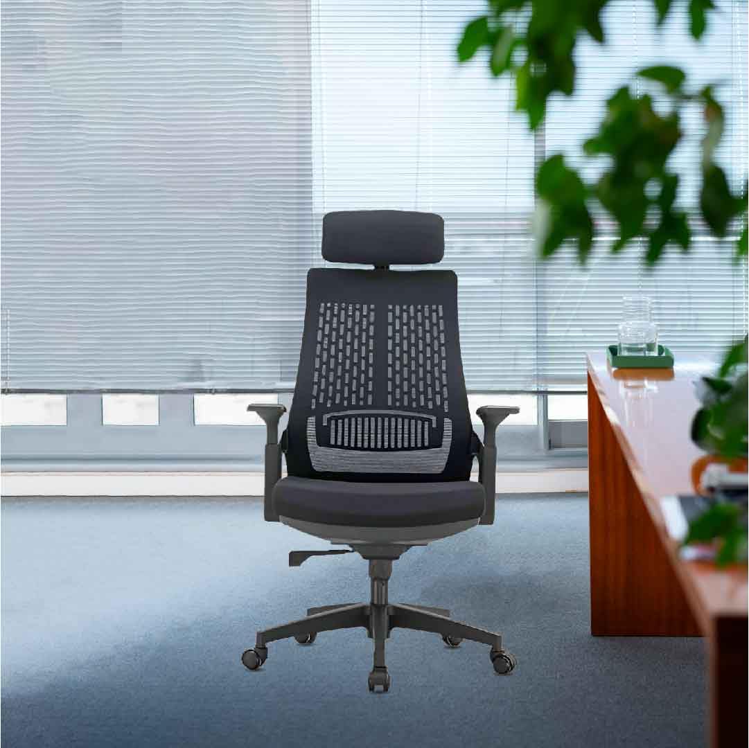 The Executive Ergonomic Office Seat is a premium office chair designed to combine comfort, functionality, and a professional appearance for high-level work environments. Engineered with ergonomics in mind, it features a contoured seat and backrest that support the natural curvature of the spine, promoting healthy posture during long hours at the desk. Adjustable components such as seat height, armrests, lumbar support, and tilt mechanisms allow users to customize the chair to their individual needs, reducing fatigue and preventing musculoskeletal strain. Upholstered in quality materials like mesh, fabric, or leather, the chair offers both breathability and style. With a sturdy base, smooth-rolling casters, and a 360-degree swivel, the executive ergonomic office seat delivers mobility, durability, and all-day comfort, making it ideal for managers, executives, and professionals seeking both performance and elegance in their workspace.